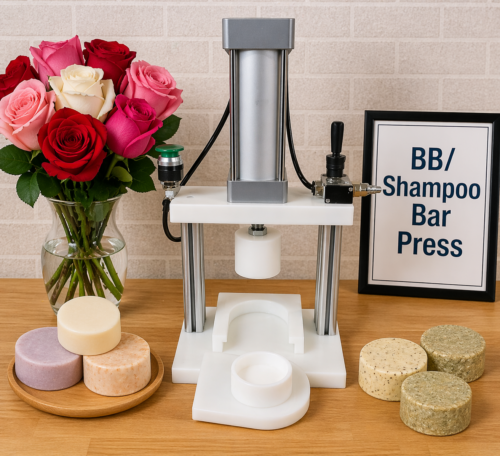 You can use this press to make bathbombs or shampoo bars without the need for a can. Just pile your mix on and press. Clean the ring up and then take out your product.